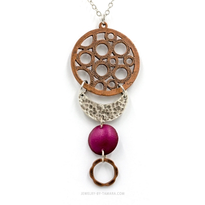 Pink leather silver and copper necklace