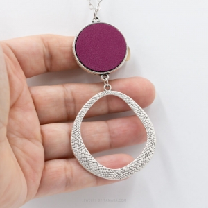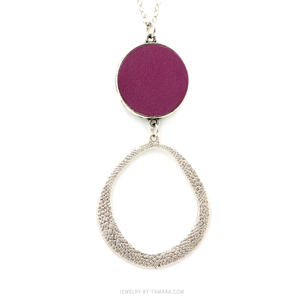 Burgundy leather hammered circle necklace