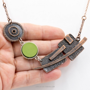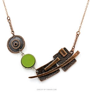 Green leather copper necklace