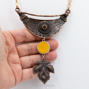 Honey yellow leather in bezel setting