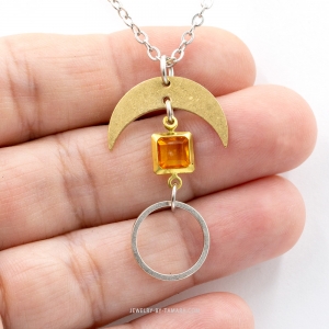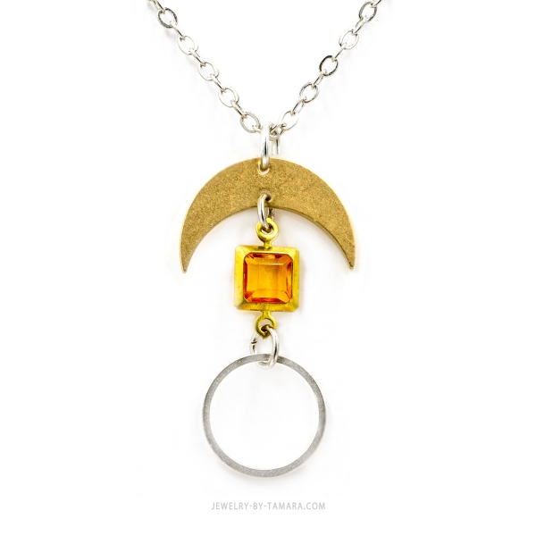 Antique silver and raw brass with beautiful amber Swarovski crystal