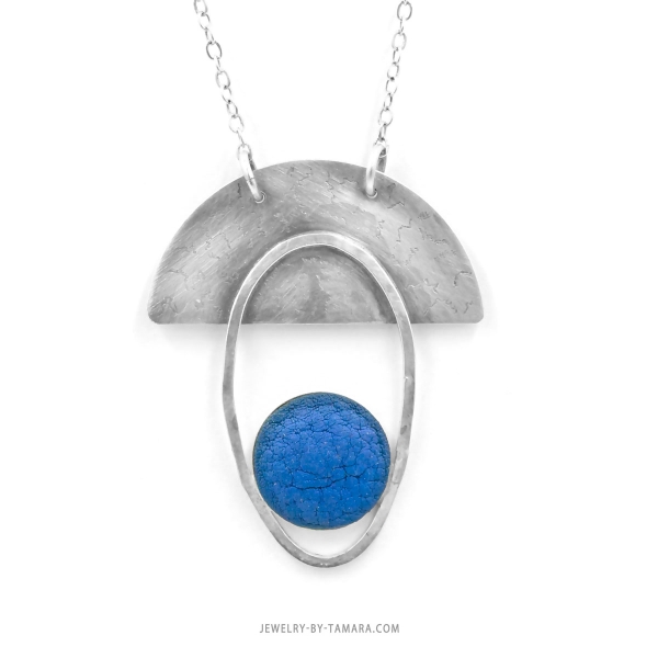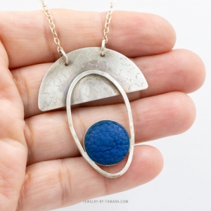 One of a kind sterling silver and blue suede necklace