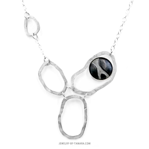 Black pattern leather in sterling silver bezel setting