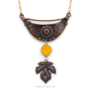 Honey yellow leather in bezel setting