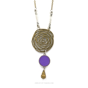 Purple leather and bronze necklace