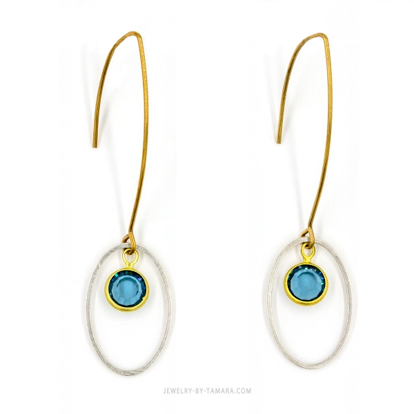Antique silver and raw brass with beautiful blue Swarovski mini crystals